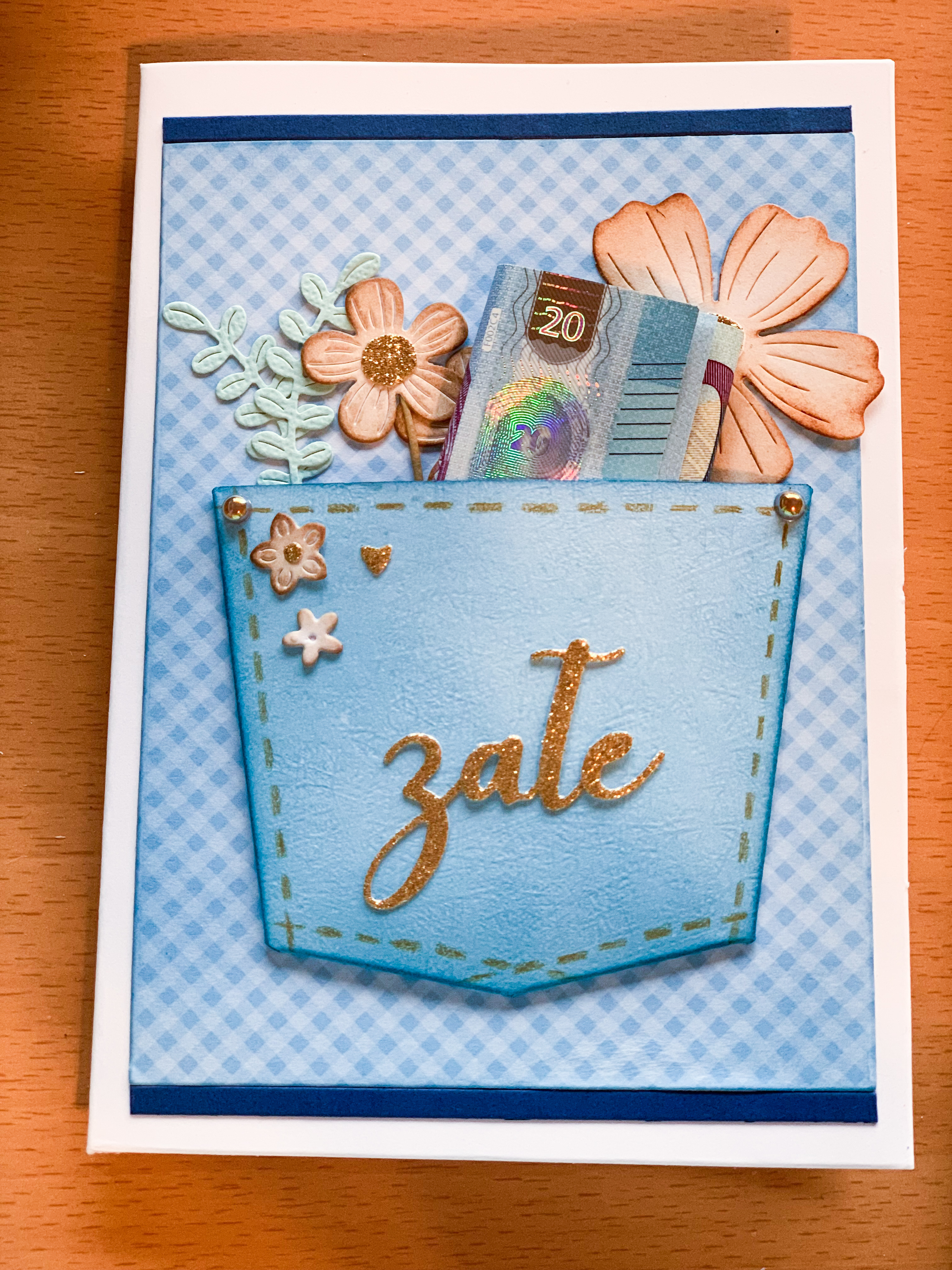 Čudovita voščilnica in super ideja, da žep služi kar za zataknit denar. Hvala, da si se pridružila našemu izzivu v Veseli hiški. Valerija DT